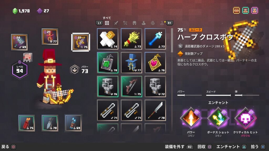 似たビルドになってしまう印象です。 - 全体的にアイテムがやや少ない